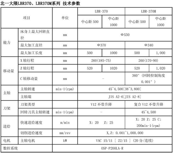 LBR370为数控车床,LBR370M为数控车削中心。